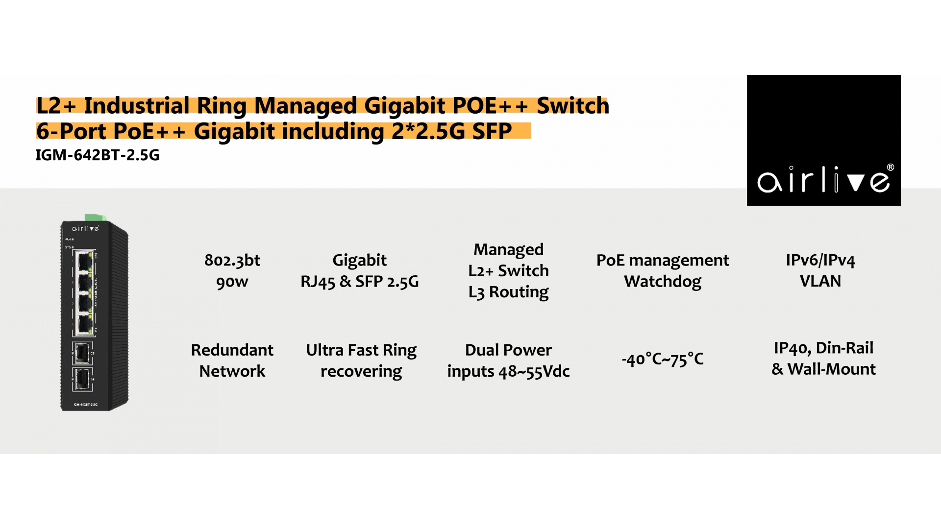 | Model | AirLive IGM-642BT-2.5G |